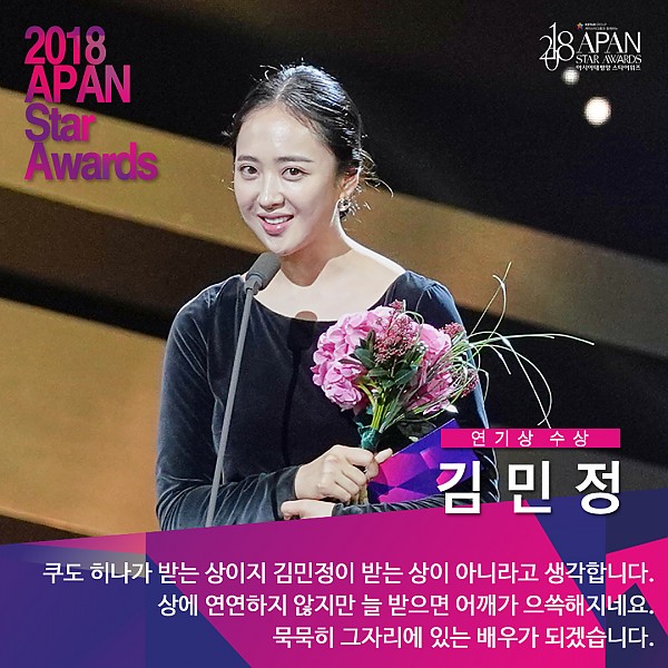 '2018 APAN Star Awards' 여자 연기상 김민정 장소연 페이지 정보 작성자 연매협 작성일18-10-26 14:03 조회8,180회 본문 ▲ 여자 연기상 김민정(tvN '미스터 션샤인') 장소연(JTBC '밥 잘 사주는 예쁜 누나') 이전글 다음글 목록