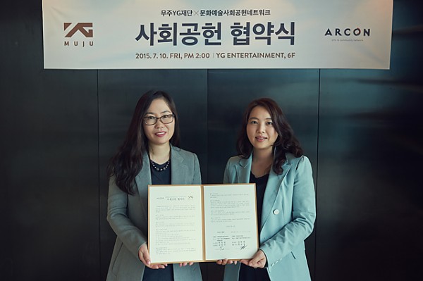 13일 YG에 따르면 불우 청소년과 어린이를 돕기 위해 설립한 비영리재단 '무주YG재단'과 문화체육관광부가 인증한 매개인증단체 문화예술사회공헌네트워트는 최근 YG엔터테인먼트 사옥에서 이를 위한 협약식을 가졌다.