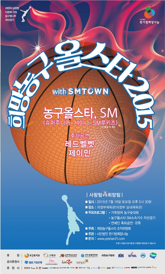 사단법인 한기범희망나눔이 오는 7월 18일 오후 5시 30분부터 의정부체육관에서 ‘제8회 희망농구올스타 2015 with SMTOWN’ 자선경기를 개최한다.