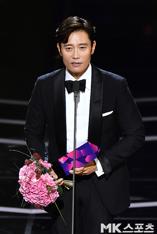 배우 이병헌이 ‘아시아태평양 스타 어워즈’서 대상을 수상한 뒤 소감을 말하고 있다.